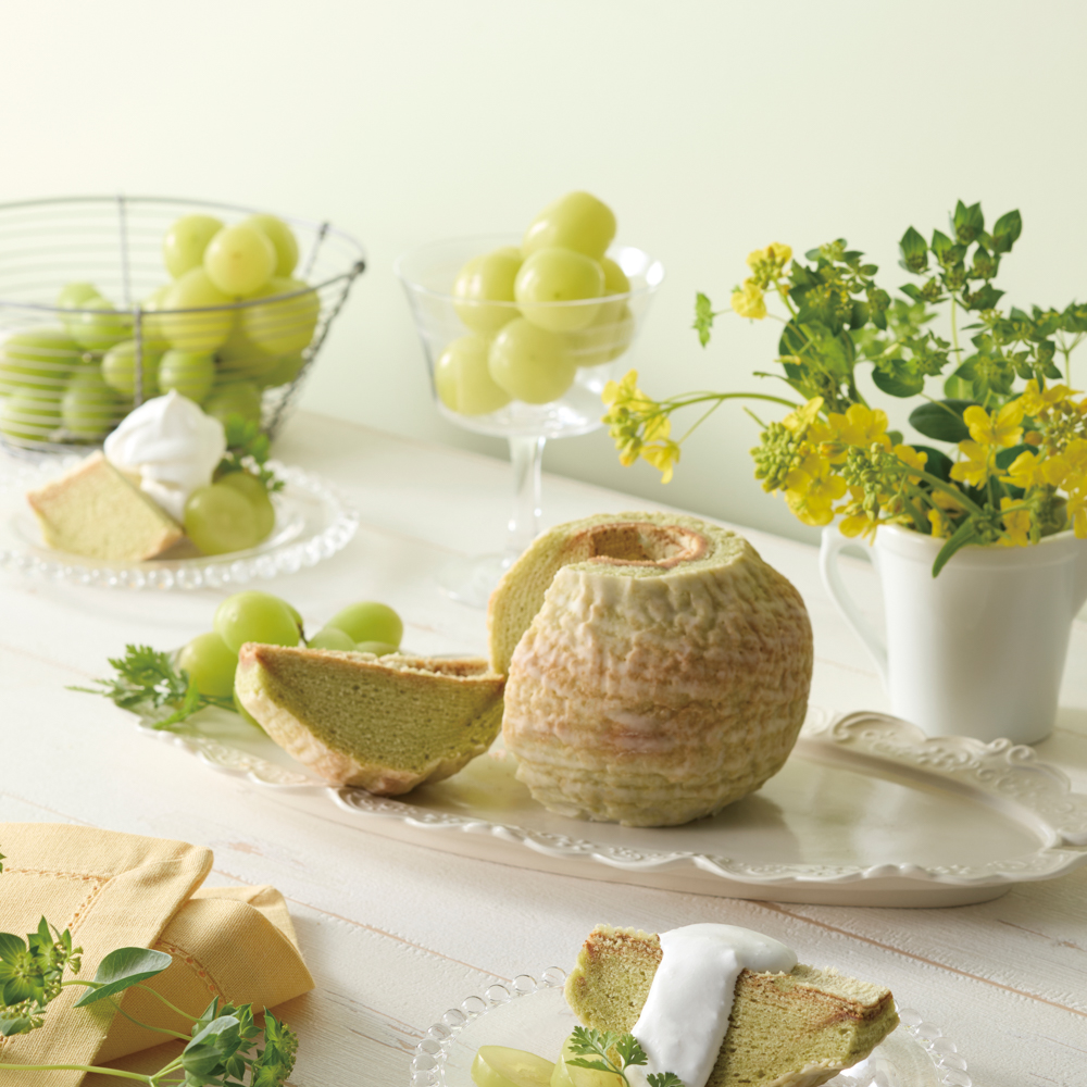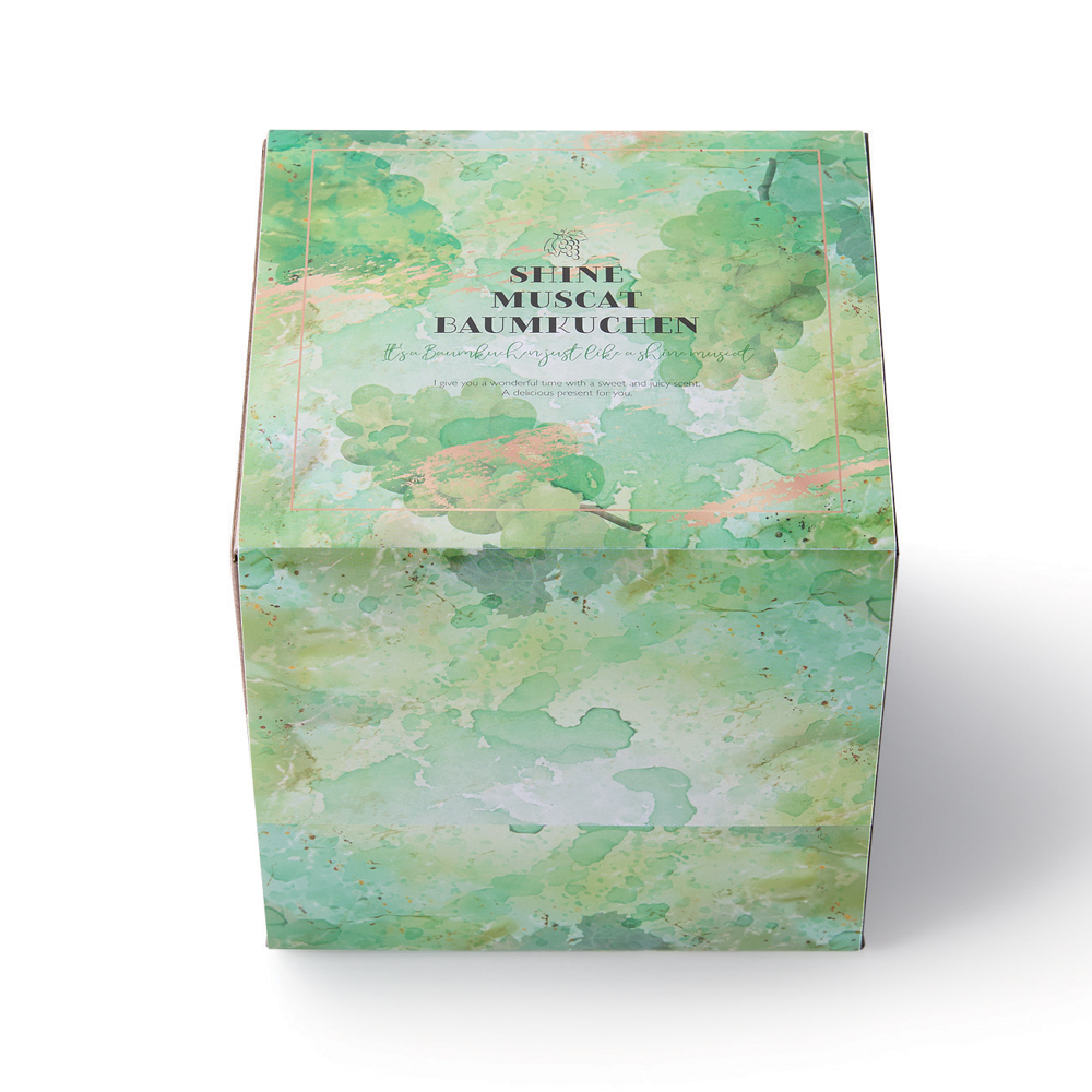 国産のシャインマスカットピューレを使用し、大きな一粒のシャインマスカットバウムを仕上げました。