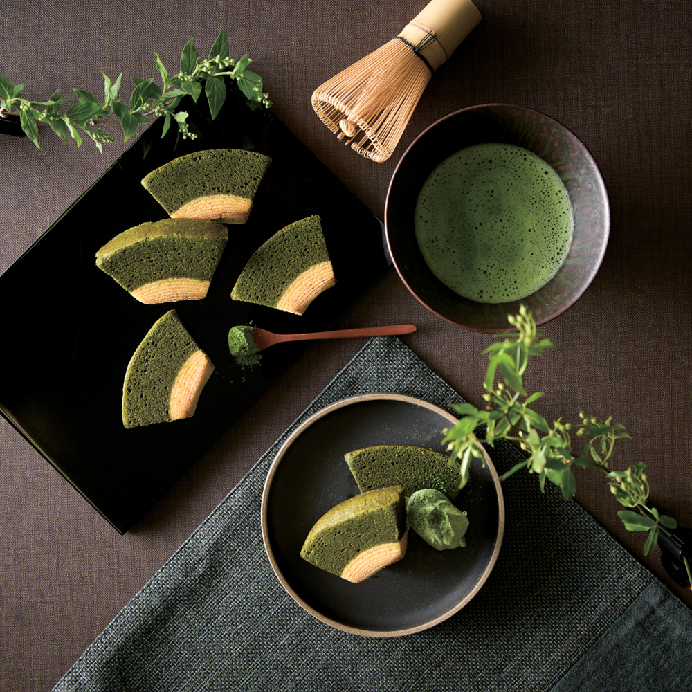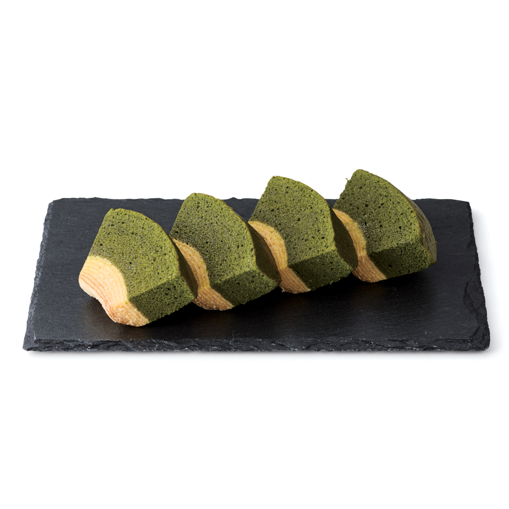 祇園辻利監修 抹茶ばうむくーへん「祇園辻利」自慢の宇治抹茶を贅沢に練り込んだ「ばうむくーへん」は抹茶の濃厚な味わいが引き立ち綺麗な濃緑色と香りを楽しめます。