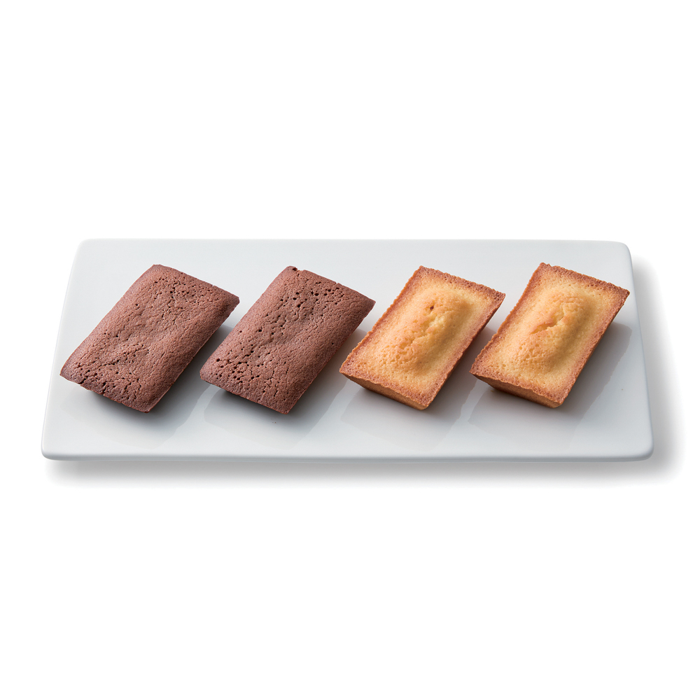鉄人坂井シェフのこだわりスイーツ。チョコレートが豊かに香るリッチなフィナンシェと風味豊かなプレーンの二つのフレーバーが楽しめるセット。