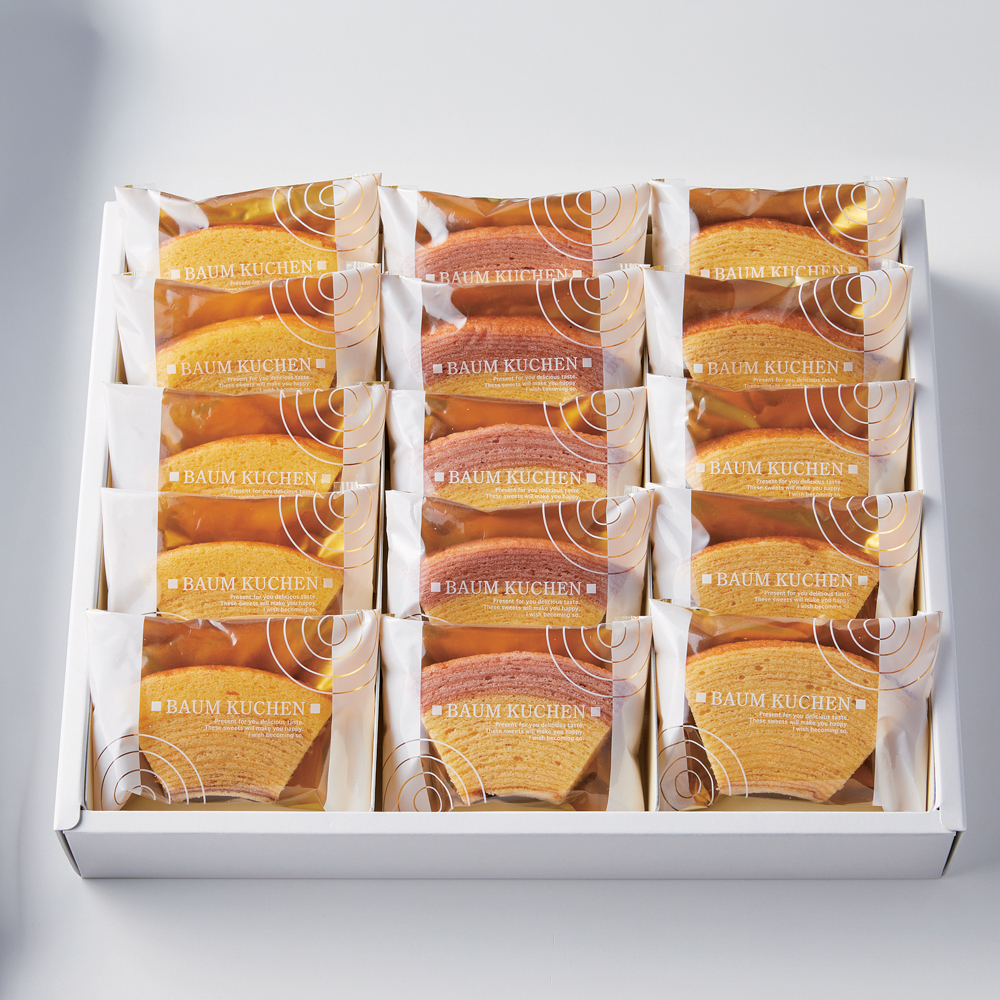 フレッシュな北海道ミルクを生地に混ぜ込んだミルク味、完熟苺のフリーズドライパウダーを生地に練り込んだ苺ミルク味の3種類が楽しめるカットバームの詰め合わせ。