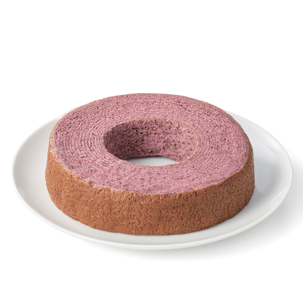 紫芋ペーストを練り込むことで柔らかいバームクーヘンの生地と合わさり滑らかでふんわりした食感。