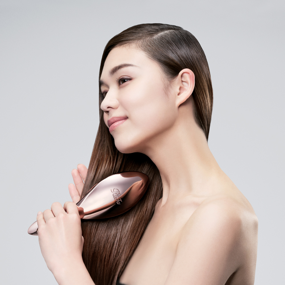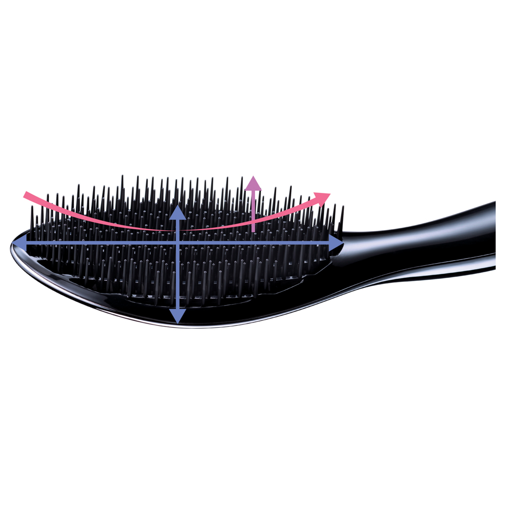 ワンストロークで、ツヤメイク。髪、一気にまとまる。ワイドに深く髪をとらえ、こぼさず梳かすために。頭の丸みにフィットして、届きにくい後ろ側の髪もからまりやすい内側も、さっとほぐしてみがきます。ツヤに奥行きが生まれ、隙のない仕上がりに。