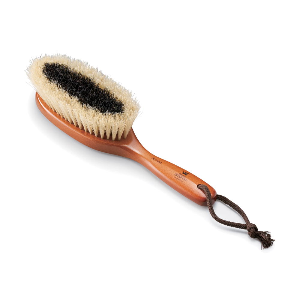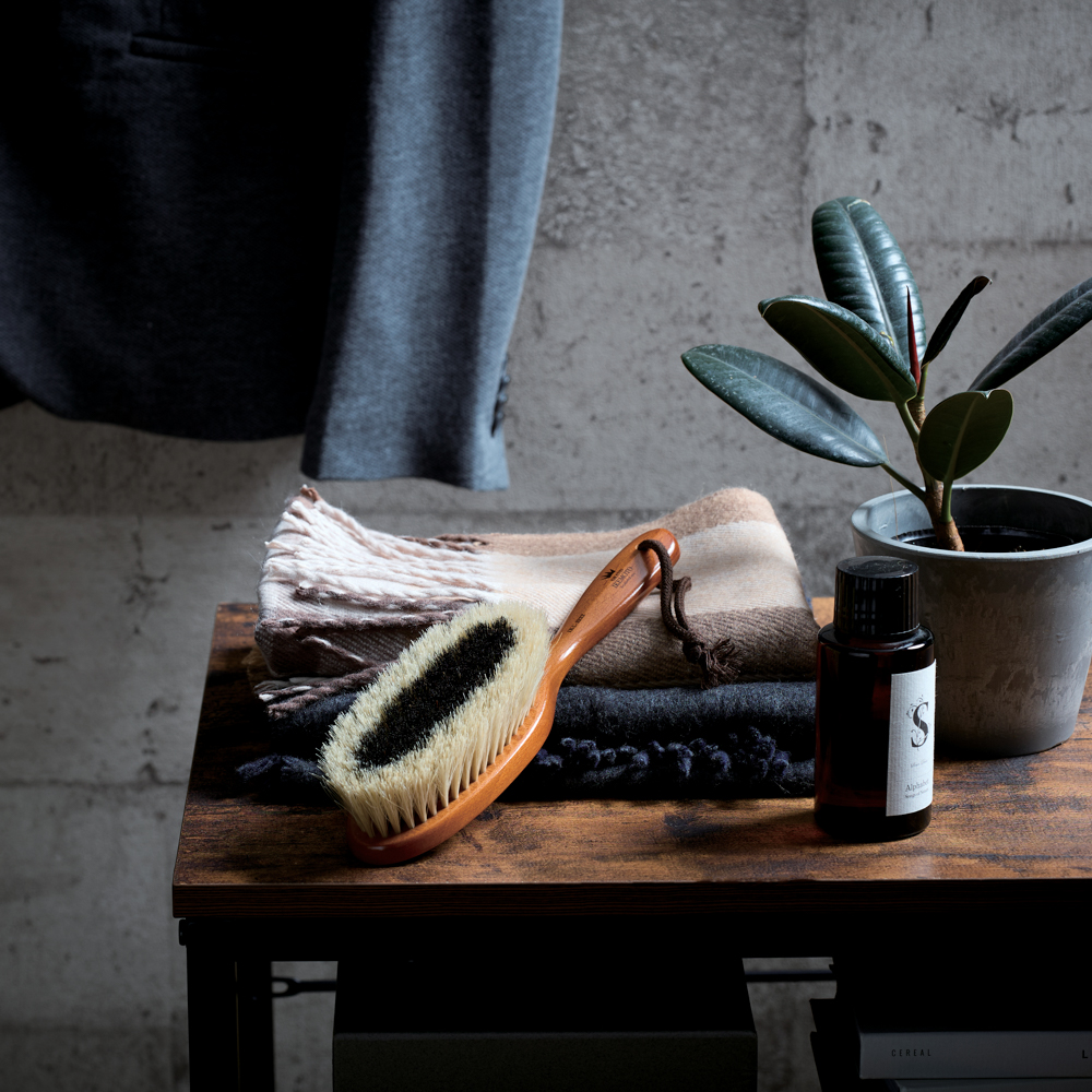 上質な服地に高級素材を使った上質なブラシ「グランドイケモト」は1929年の創業以来培われたブラシ開発製造技術に育まれた信頼の服地ケア用品ブランドです。特殊な植毛のブラシが絡まった繊維を解きほぐし、服地へのダメージを抑えながら本来の姿に整えます。