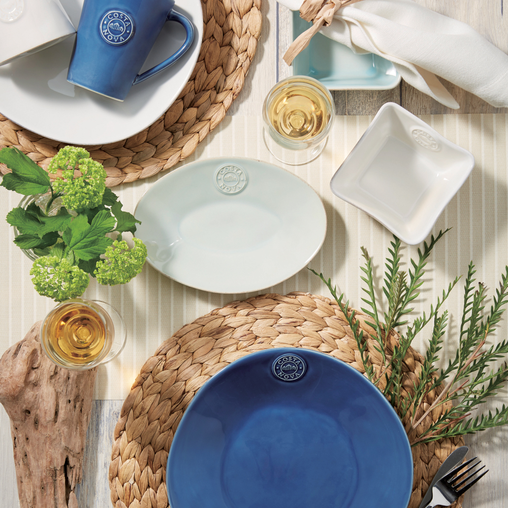 海辺の町のシンプルでリラックスした生活をコンセプトに名前のルーツは、ポルトガル北部の小さなリゾート地“Costa Nova”。コスタ・ノバのロゴはこの街並みと大西洋の波を描いており家族や友人と楽しむ食事の時間を大切にするヨーロッパのライフスタイルをコンセプトに、温かみのあるテーブルウエアを作っています。