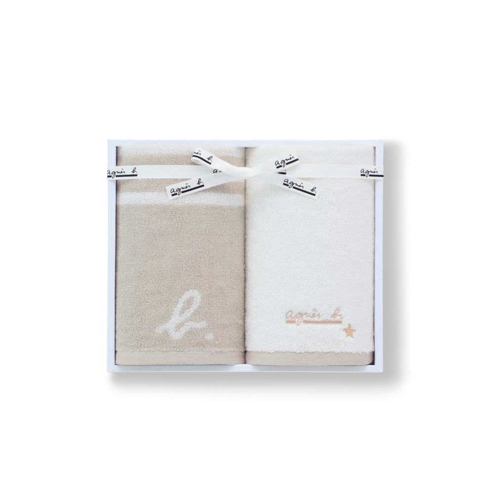 シンプルでシックなアニエスべーのタオルアニエスベーのアイコンのボーダーとブランドロゴのb.を配したジャカードタオルと、ロゴ刺繍がポイントのホワイトタオルを詰め合わせました。パイルはふんわりとしたボリューム感とすっきりとした使い心地で、上品で爽やかな印象に仕上がっており季節を問わず幅広いシーンにお使いいただけるギフトセットです。