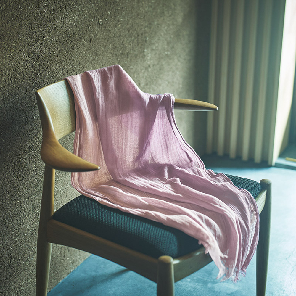 伊予の匠「今治藍美工房」が天然の染料と媒染剤で一枚一枚丹念に染め上げた軽くてソフトなストールです。