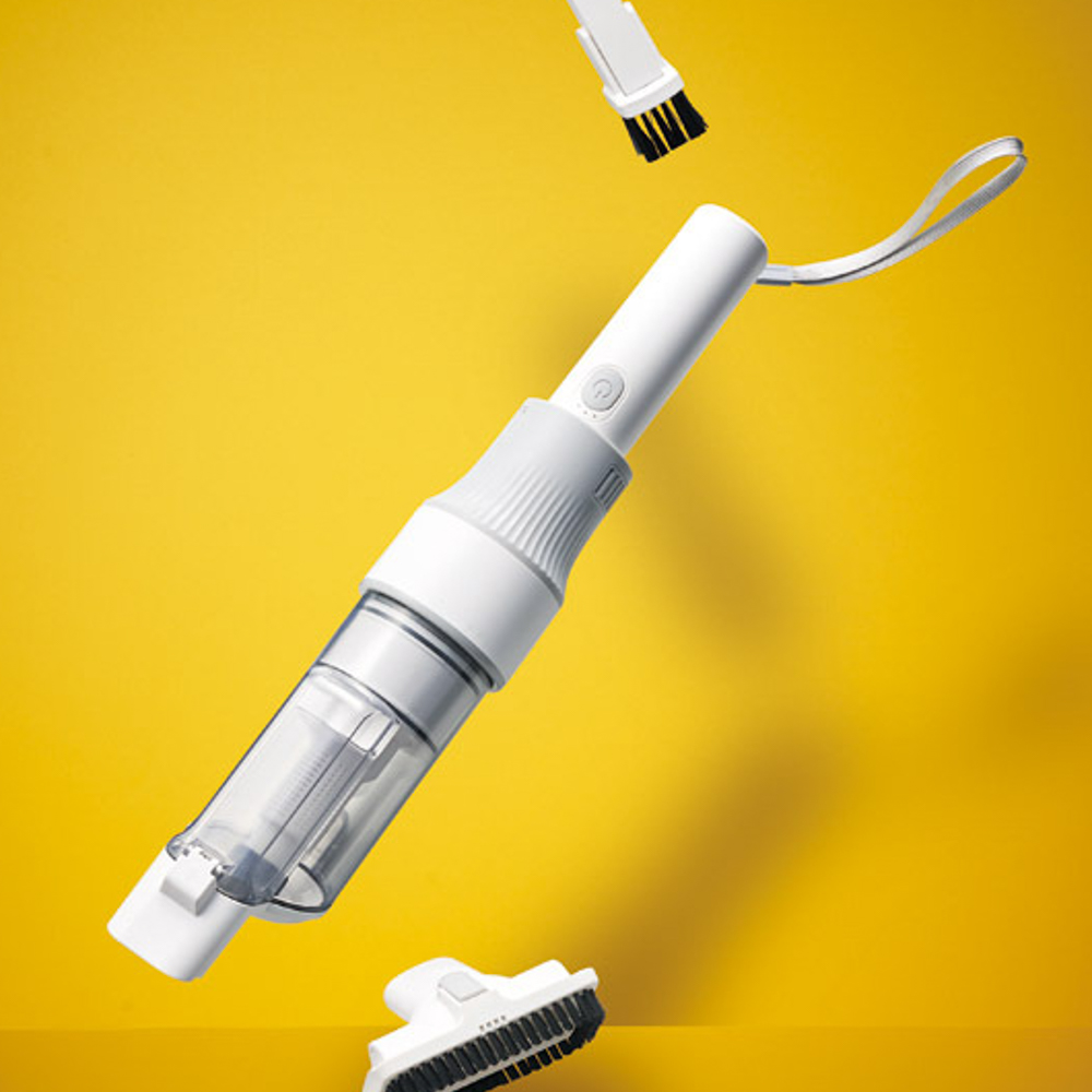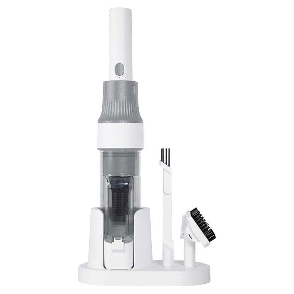 アタッチメントを収納できるスタンドが付属したコードレスハンディクリーナー。