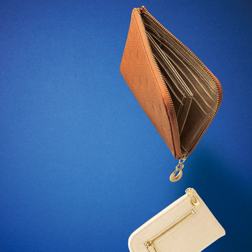 出し入れカンタンなL字ファスナーがレジ前でもたつかず便利。