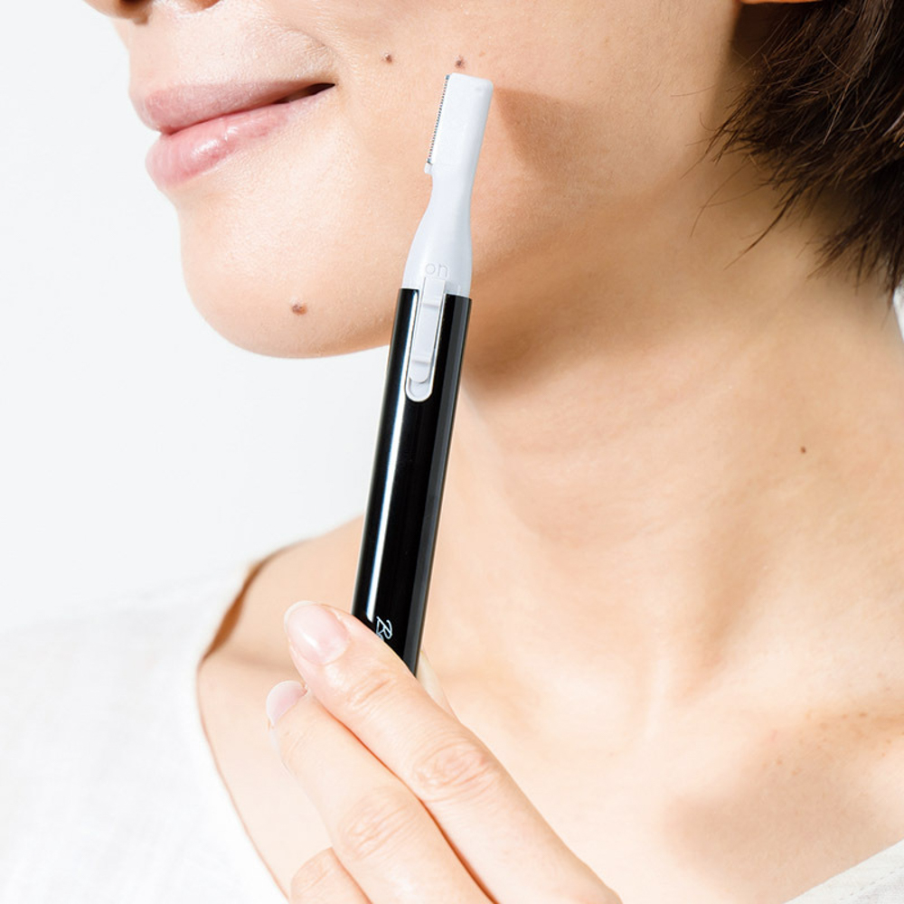 フェイスシェーバーは簡単にまゆ毛の長さをそろえてカットもできる眉コーム付属。