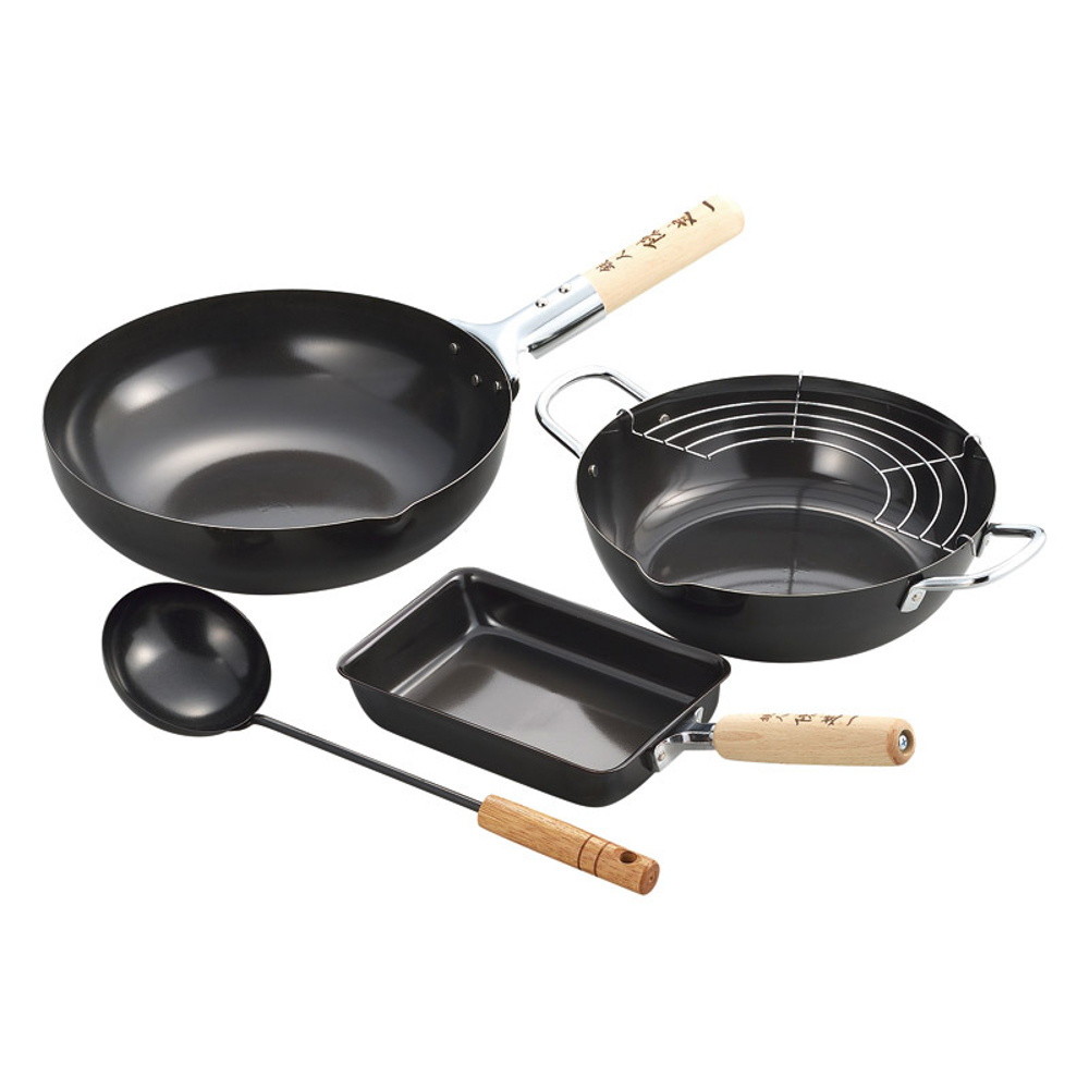 本格中華が自宅で楽しめる鉄製北京鍋と天ぷら鍋、玉子焼の3点セットです。