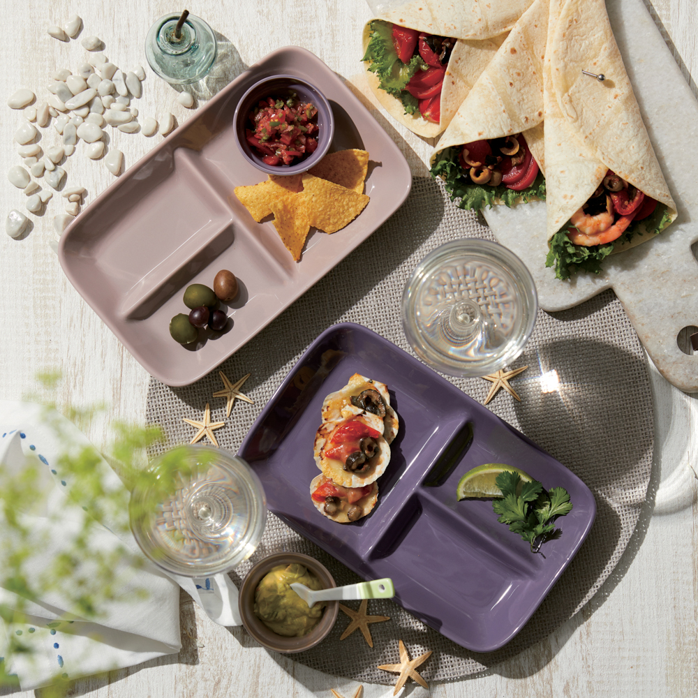 甘すぎないニュアンスカラーが料理を引き立てるプレートところんとしたフォルムがかわいらしいココットのセット。
