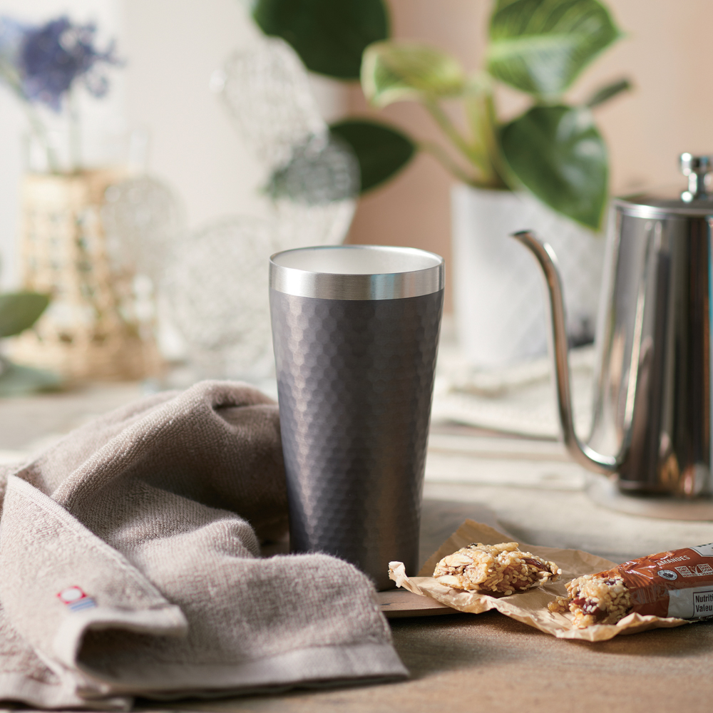 日常をより素敵にアップデートしてくれるナチュラルカラーの今治タオルと真空二重構造のステンレスカップのセット。