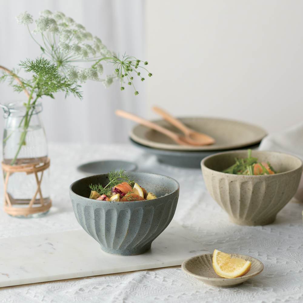 個性的でおしゃれなオーバーシーズ・テイストの食器が食卓にアクセントを加え、