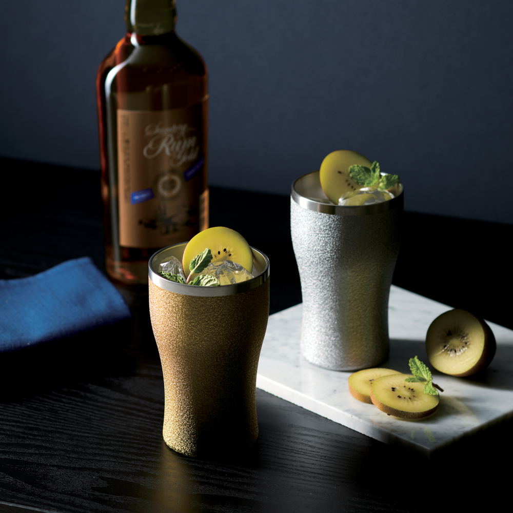 金と銀に輝く贅沢な質感の真空2層タンブラーセットステンレス製の真空2層タンブラーです。質感は高級感があり、くびれのあるフォルムは持ちやすく手になじみます。