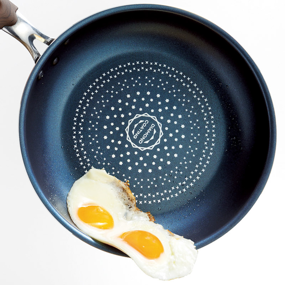 食材が焦げ付きにくくダイヤモンドコートを施したフライパンとディープパンと玉子焼と両手鍋のセット商品です。