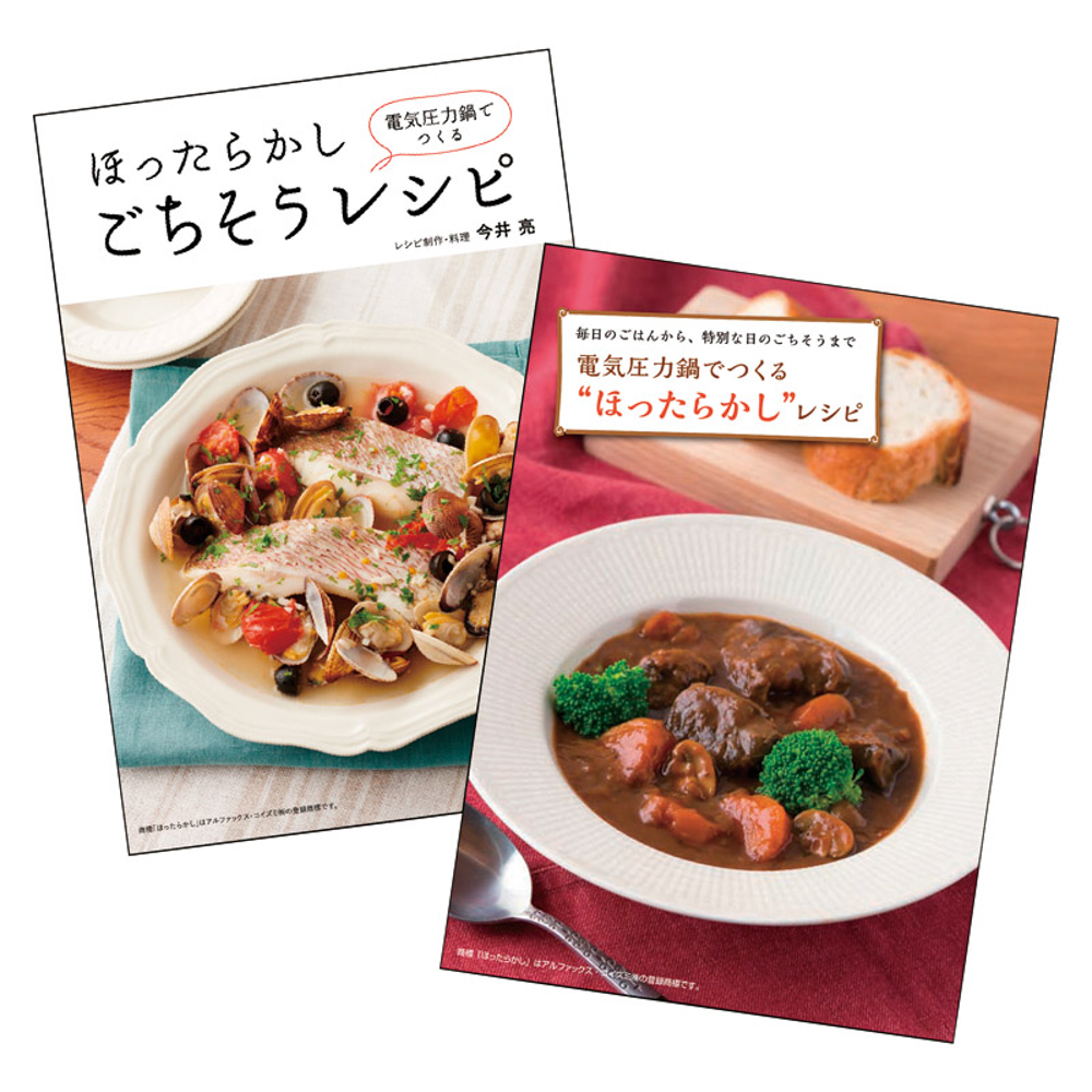 計量カップ・しゃもじ・蒸皿・蒸気水受け・電源コード・予備用浮き圧力弁シール2個(同封注意書に添付)・レシピブック(2冊)付。