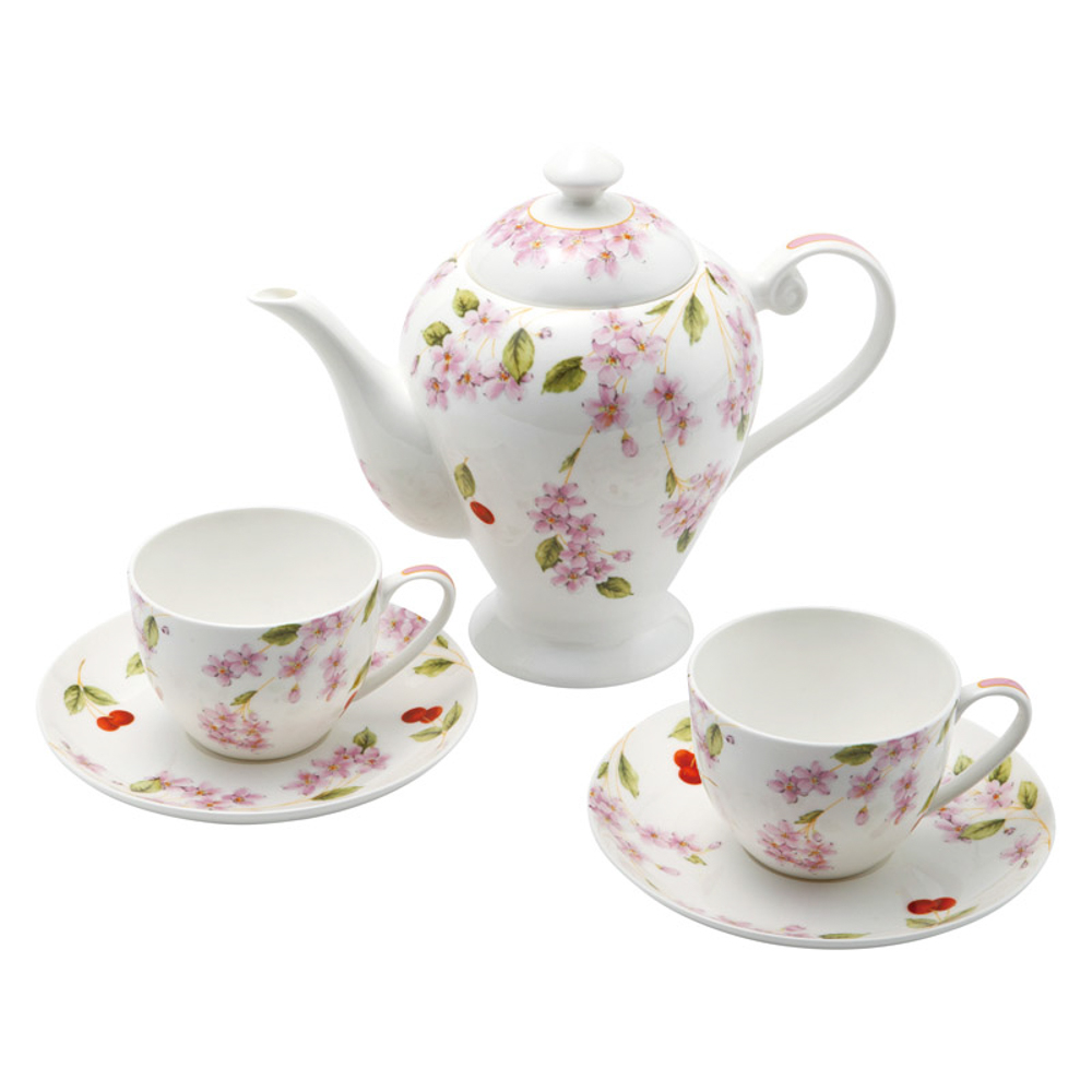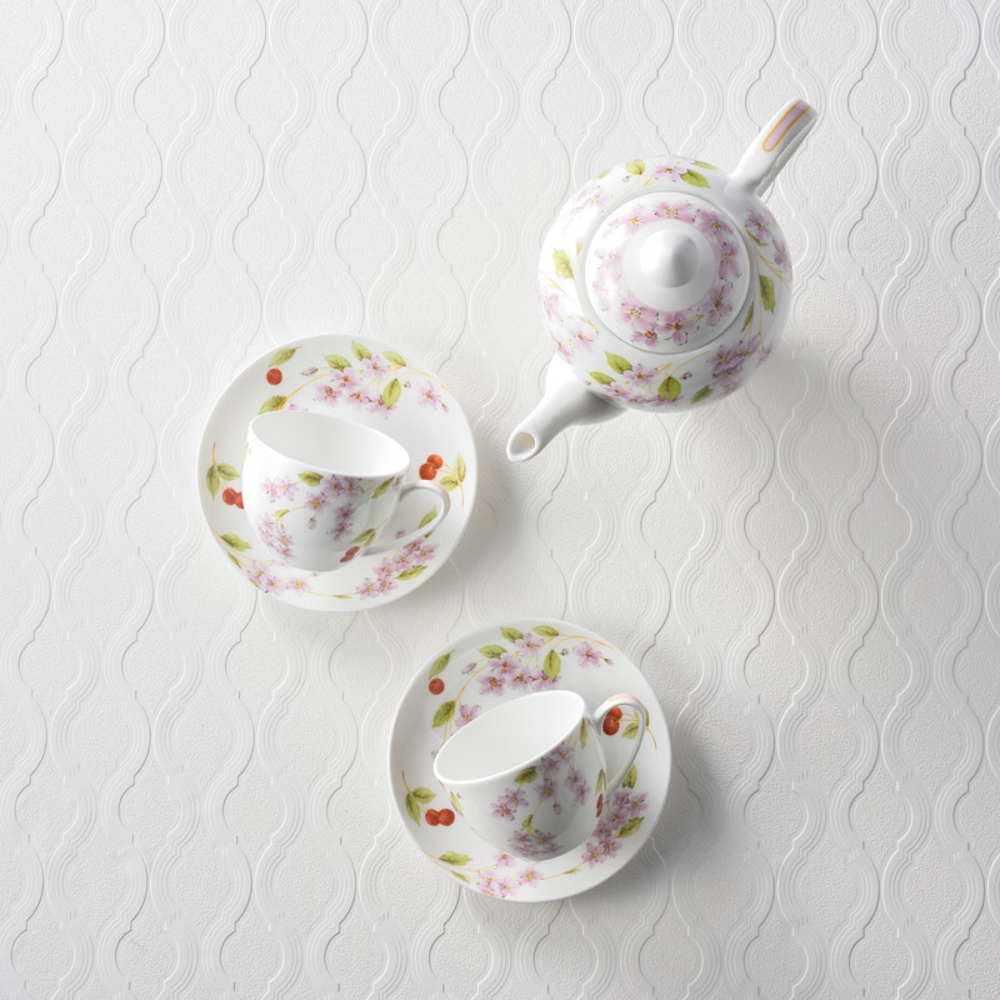 | 内容量 | カップ(口径9×6.5cm)・ソーサー(径15.6×2cm)×各2、ポット(幅24.7×20.5cm・1L)×1・ファインボーンチャイナ |