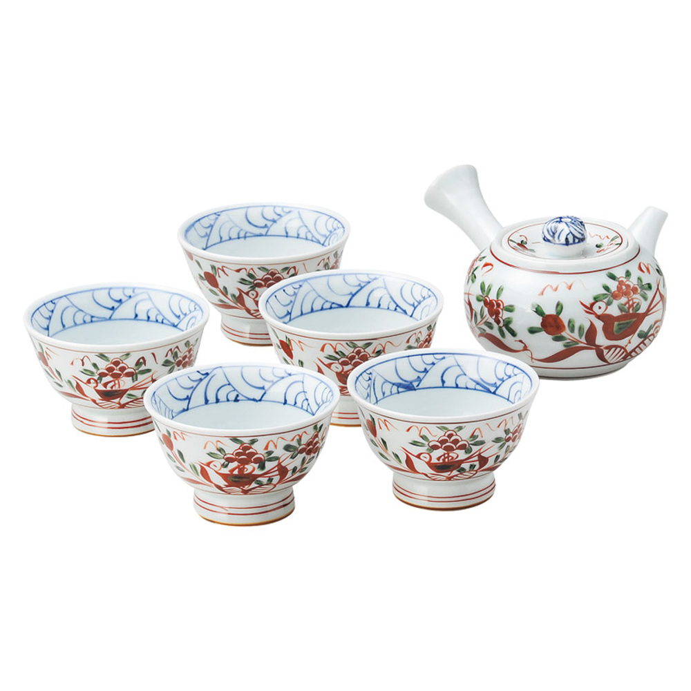 急須(径10.7×18.5×9.7cm・満水約330ml)×1、仙茶(径9.2×5.8cm)×5・陶磁器