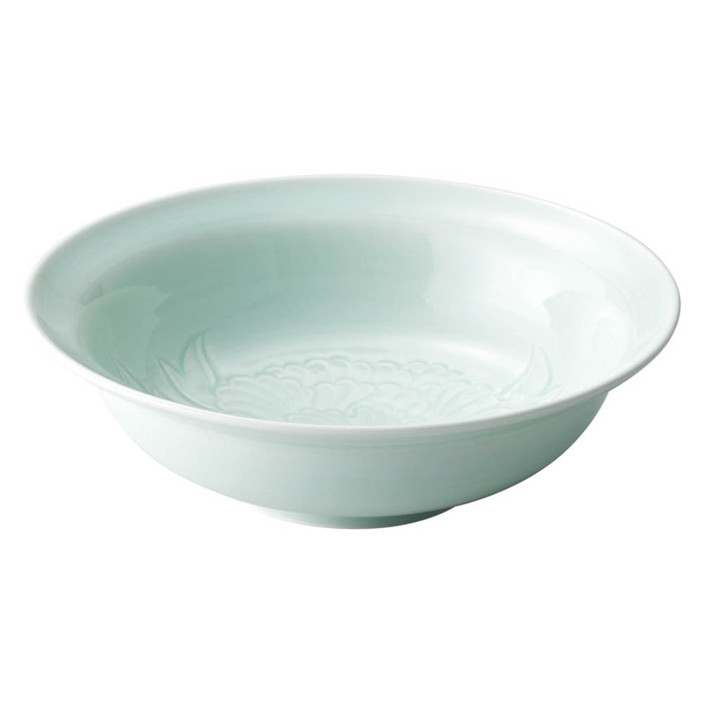 青白磁牡丹絵 飾鉢(木箱入)
