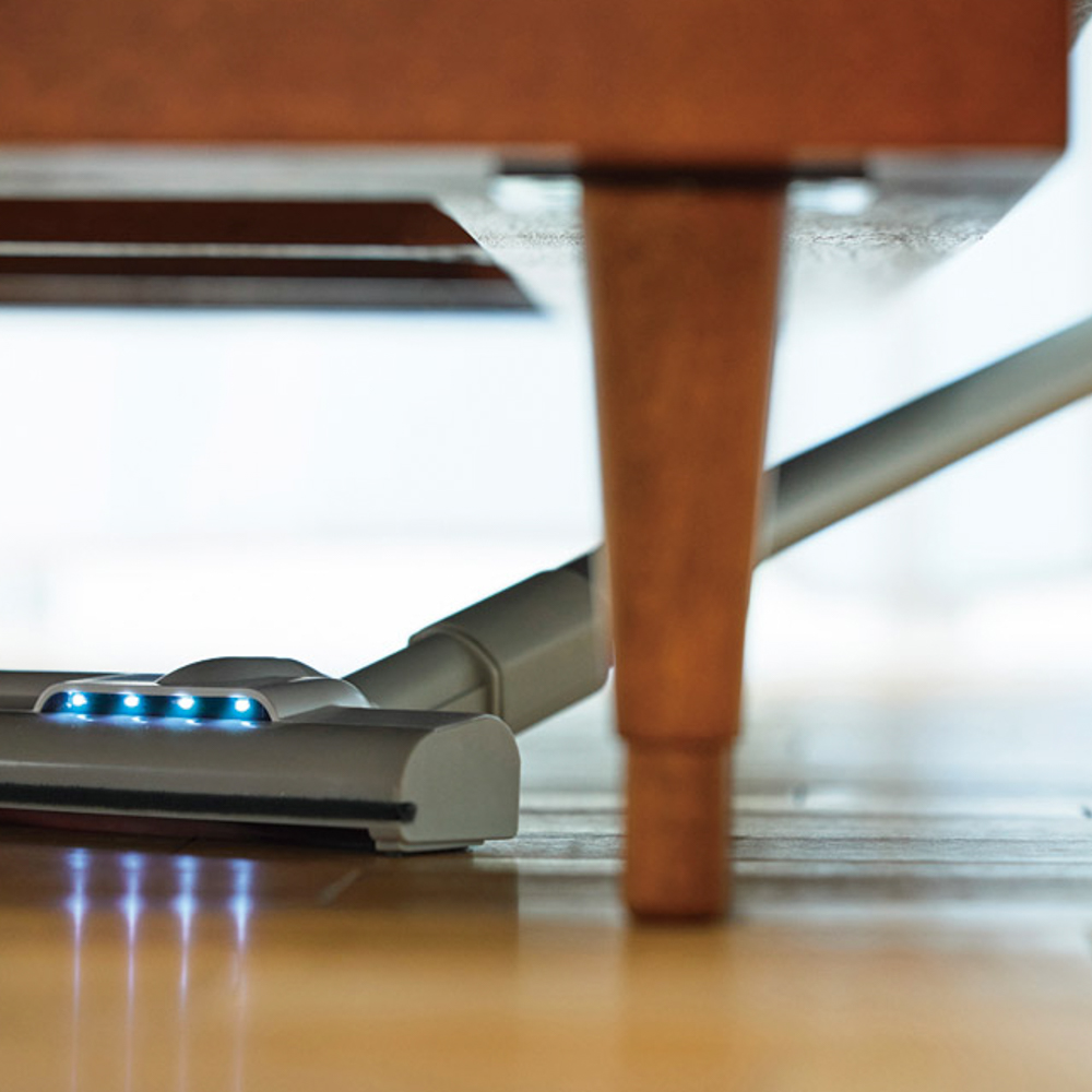 日常的にサッと使いやすい仕様にこだわっており、いすの脚回りなどの掃除でも小回りがきく他、床と並行にしてもヘッドが浮かないため、ソファやベッド下の掃除にも便利。