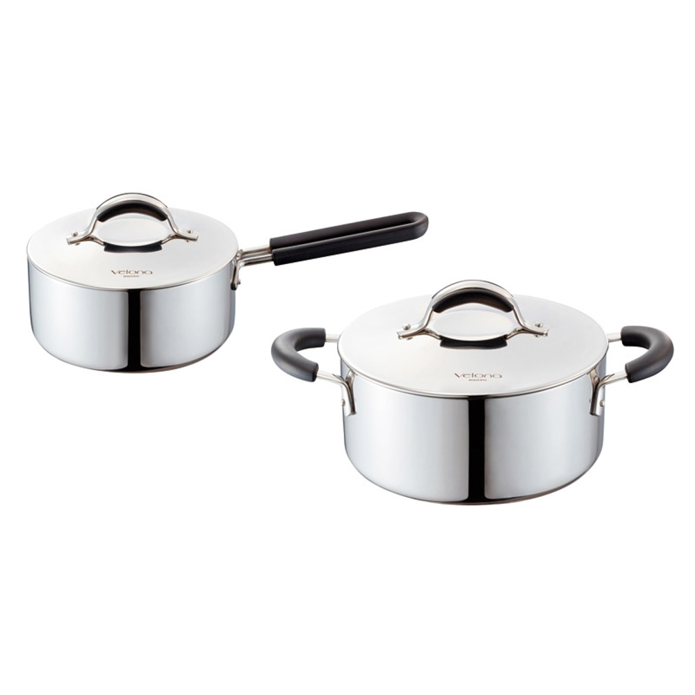 | 内容量 | 片手鍋18cm(35.6×18.6×13cm・2.1L)・両手鍋20cm(31.3×20.6×14.7cm・2.9L)×各1・本体:全面5層鋼(18-8ステンレス・アルミニウム・アルミニウム合金・アルミニウム・18-0ステンレス)、蓋:18-8ステンレス、取っ手・ツマミ:18-8ステンレス・PF |