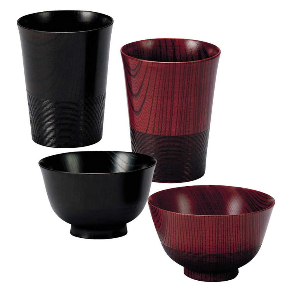 トールカップ(径8×10cm・200ml)・汁椀(径11.5×7cm)×各2・天然木(欅)漆塗
