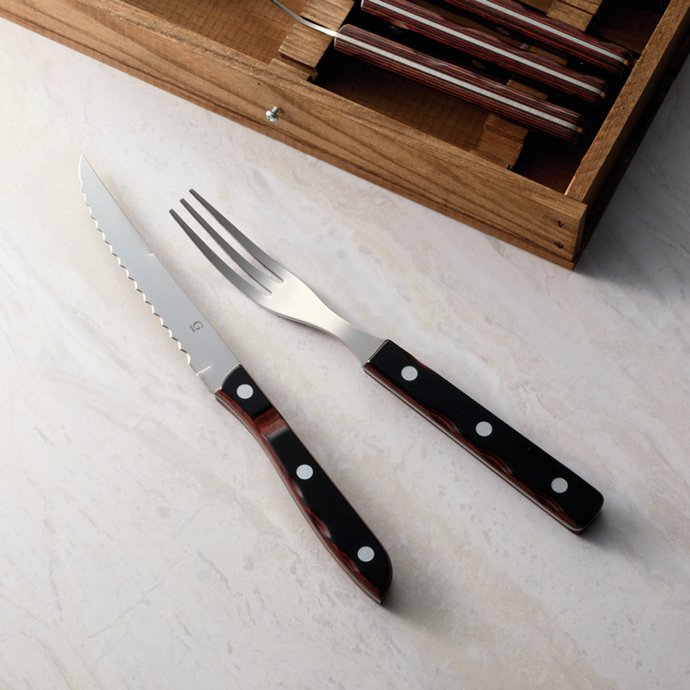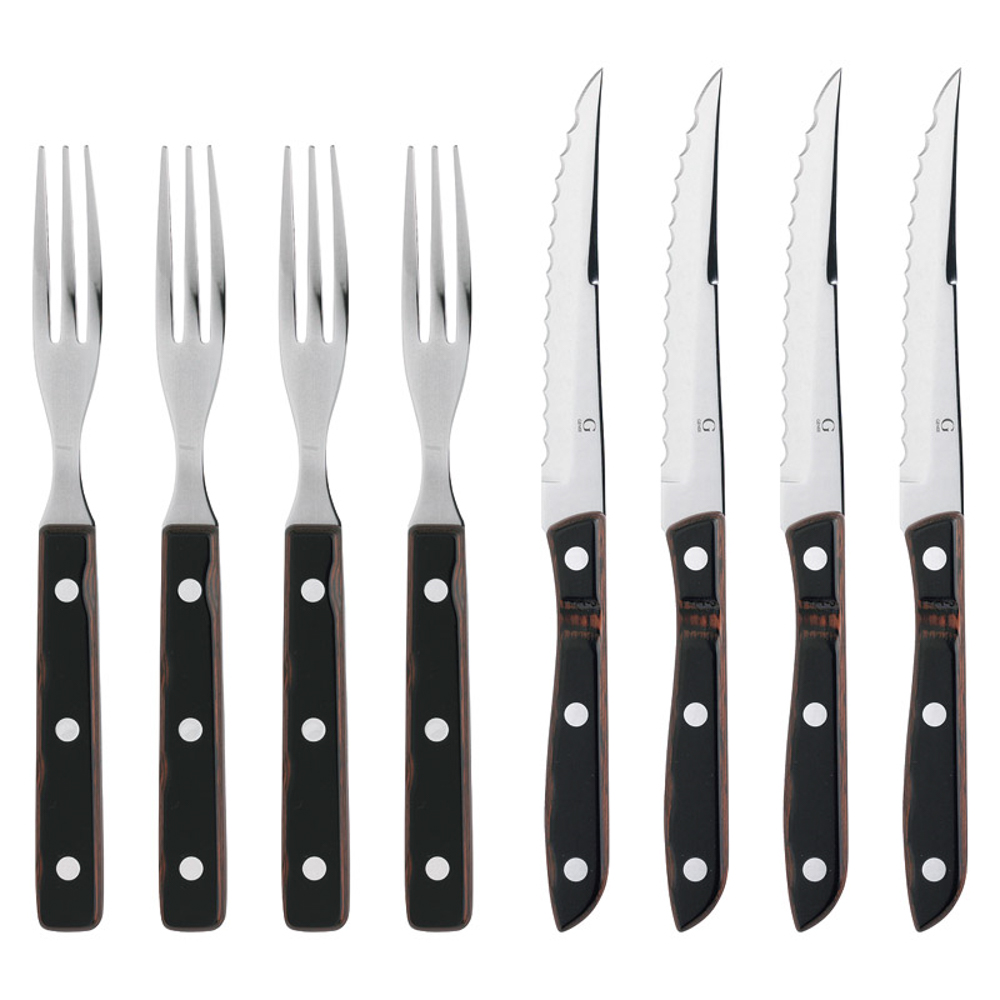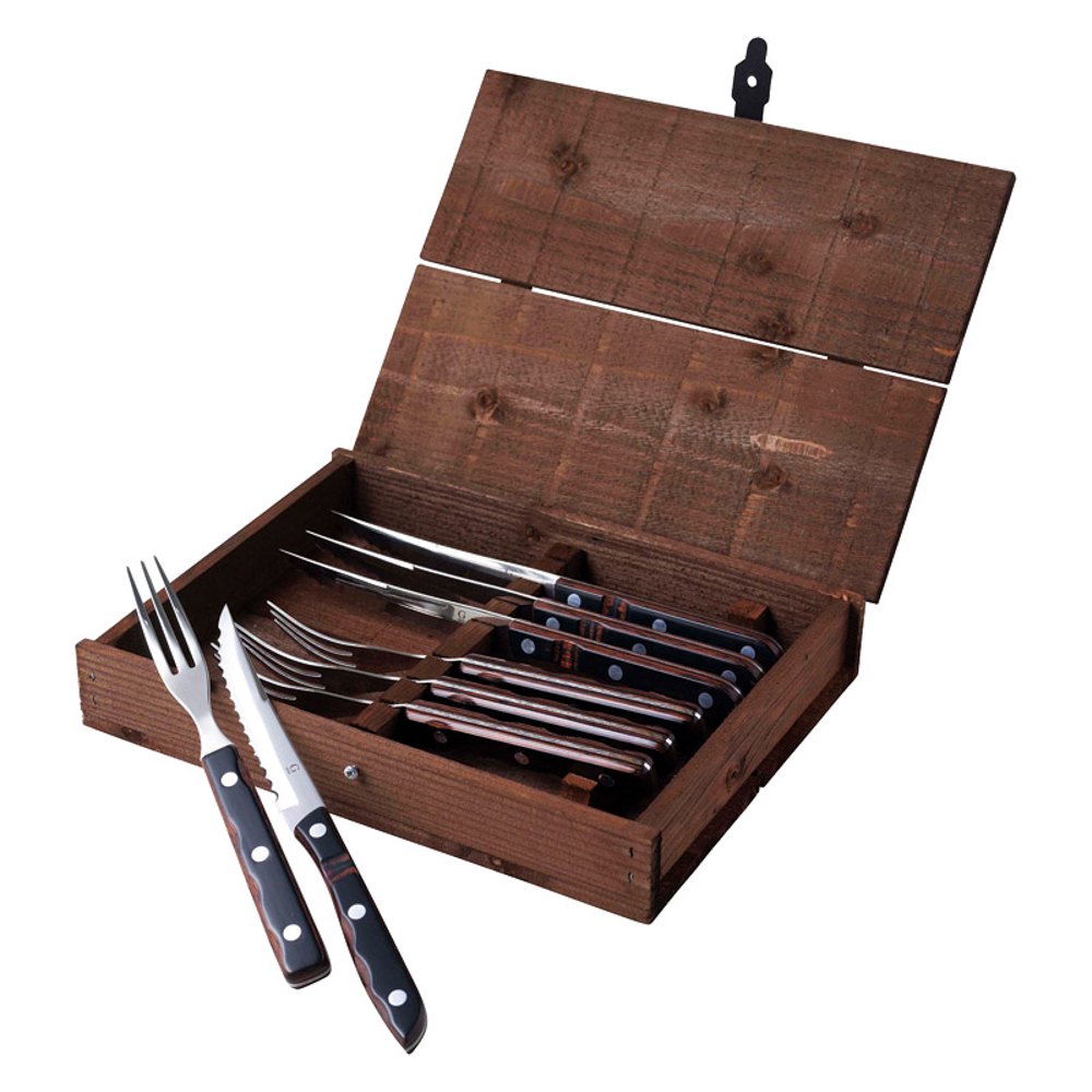 | 内容量 | フォーク:20cm、 ナイフ:22cm・ステーキナイフ・ステーキフォーク×各4、ケース(25×19×5.5cm)×1・18-10ステンレス/木 |
