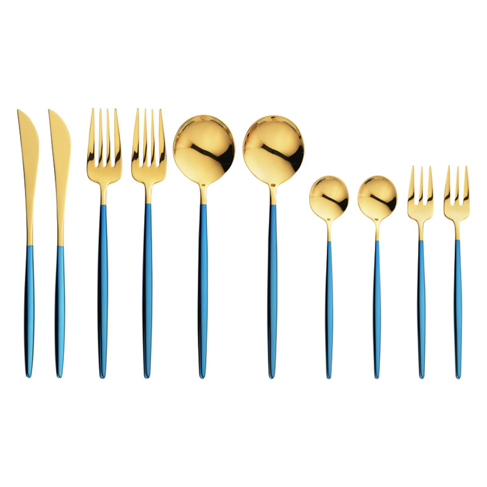 | 内容量 | デザートナイフ・デザートフォーク・デザートスプーン・ティースプーン・ケーキフォーク×各2、カトラリーケース×1・カトラリー本体:18-8ステンレス鋼(ナイフのみステンレス鋼)(金メッキ)、ハンドル部:PVDコーティング |