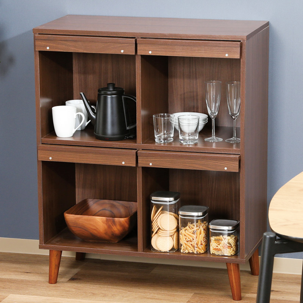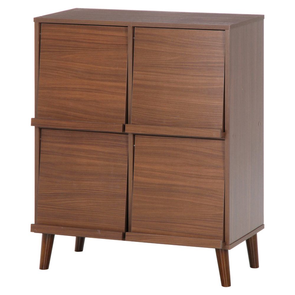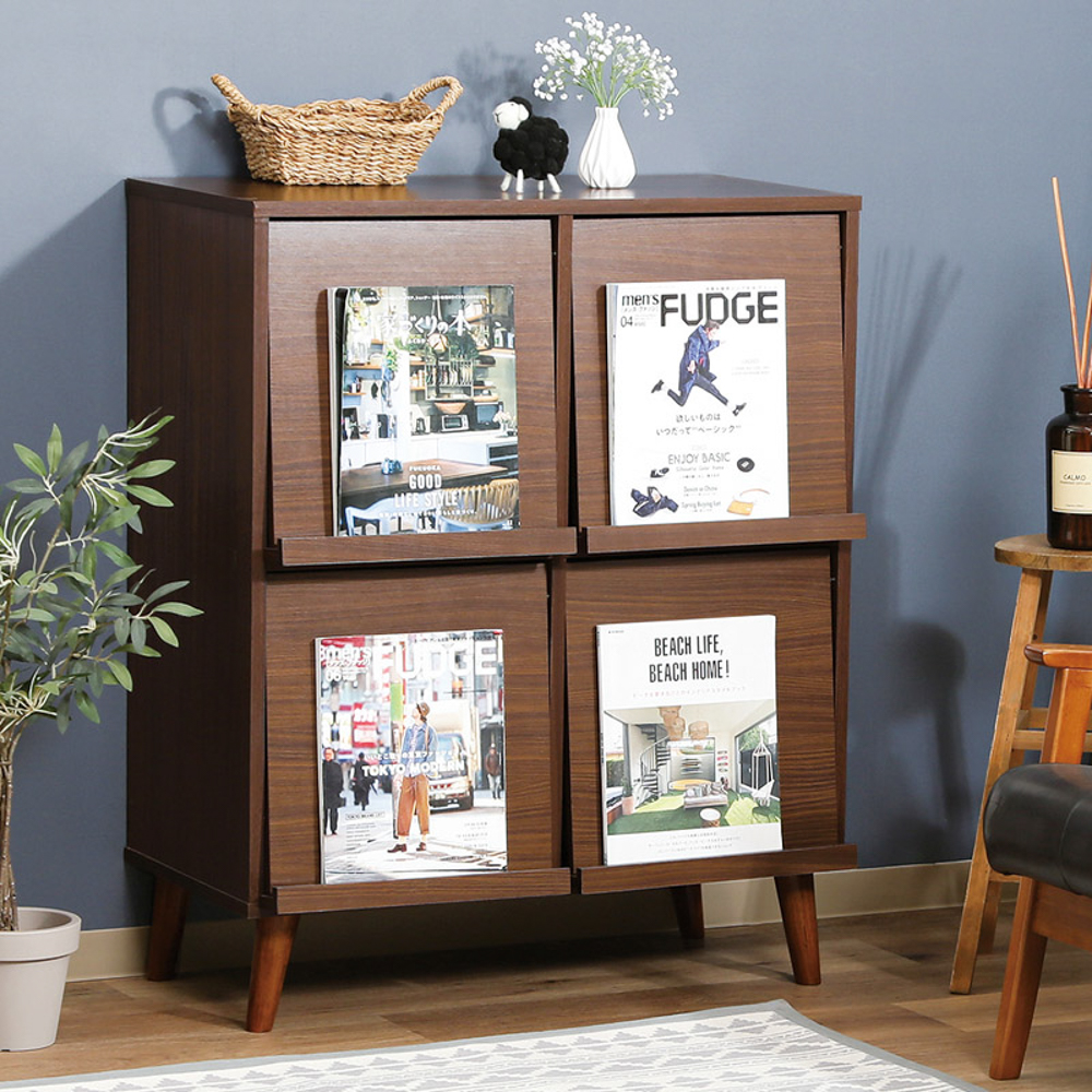 魅せて隠せるディスプレイラック。分割された収納スペースと魅せるフラップ扉で、お気に入りの雑誌などを飾りオリジナルのインテリアとして楽しめます。耐荷重量:全体約30kg・棚板10kg・フラップ部約2kg。