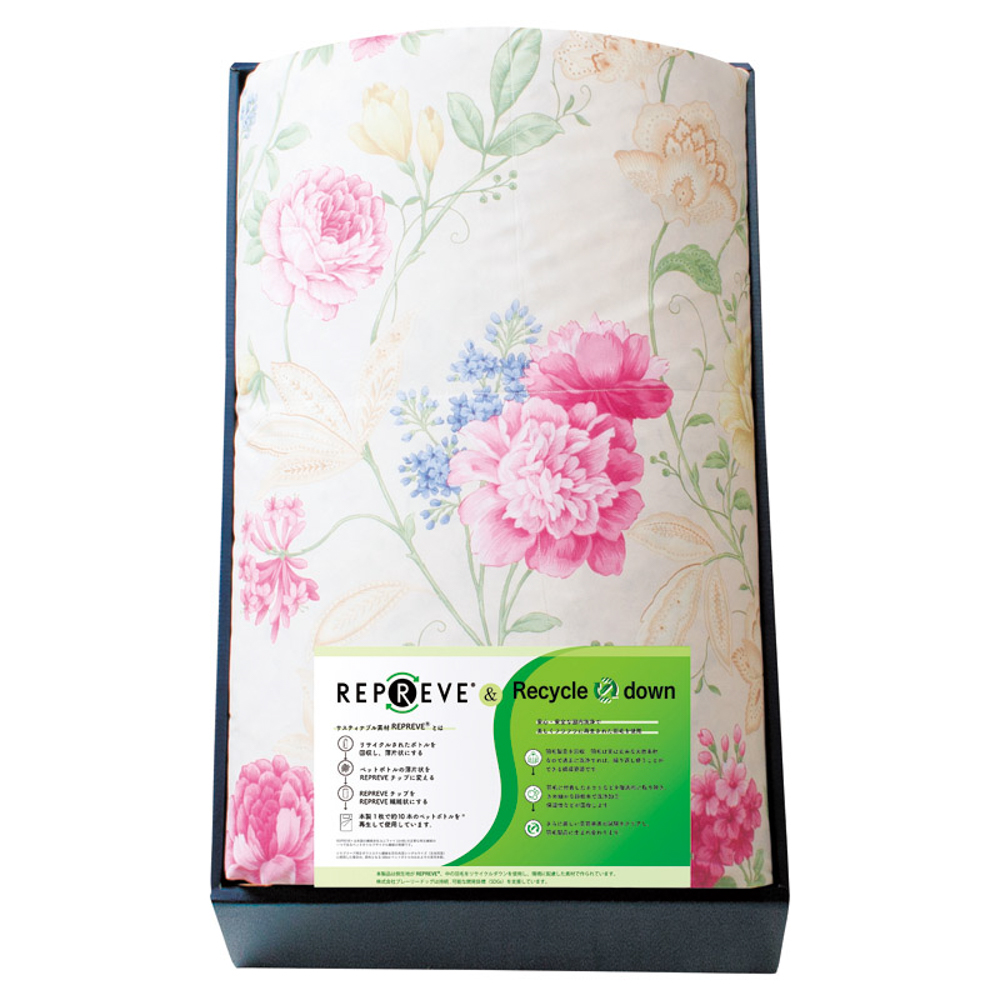 内容量 150×210cm・側:ポリエステル85%・綿15%(再生ペットボトル繊維リプリーブ®使用)、詰め物:ダウン50%・フェザー50%(約0.6kg)(リサイクルダウン使用)