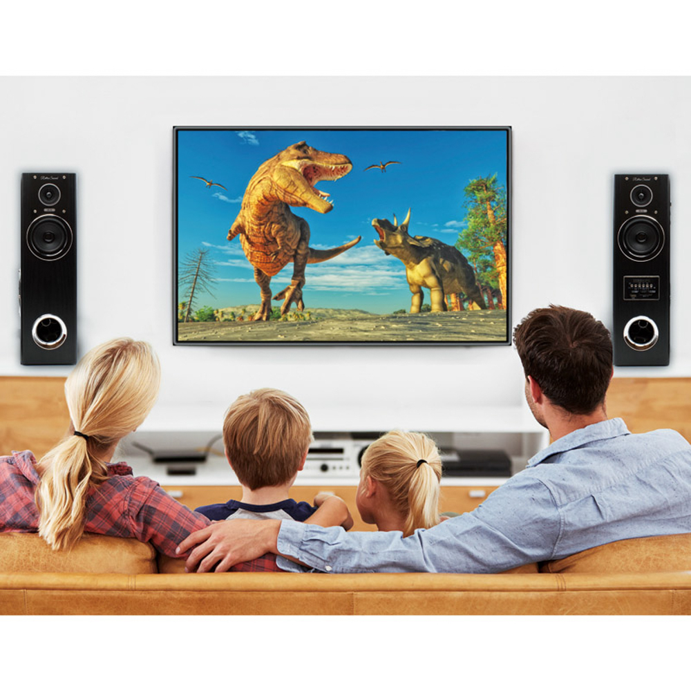 アンプ内蔵なので、テレビやDVD・ブルーレイディスクレコーダー等の映像機器、CDプレーヤー等のオーディオ機器、スマートフォンやゲーム機まで様々な機器を接続するだけでシアター級の大迫力サウンドをお楽しみいただけます。