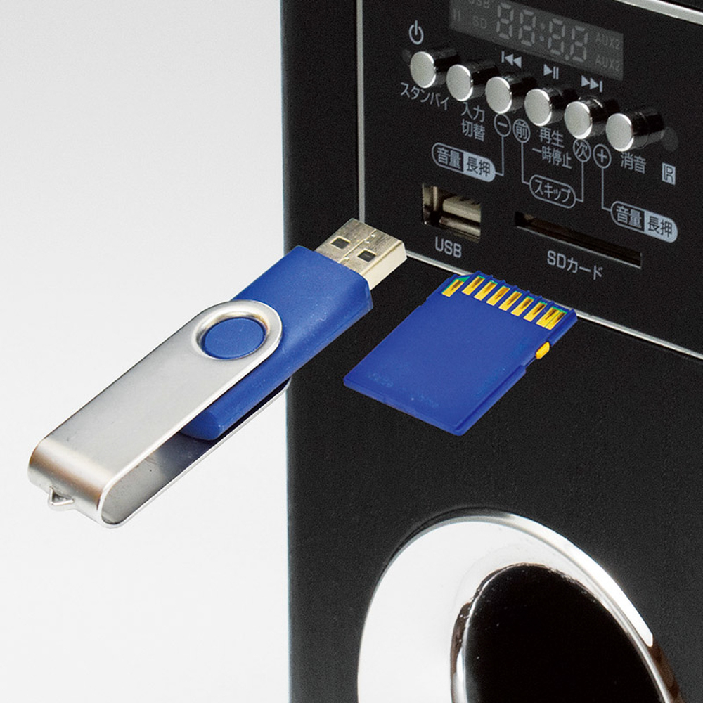 お手持ちのSDカード・USBメモリに保存したMP3音楽ファイルを直接差し込んで再生する事が出来ます。