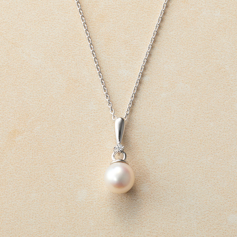 全長約40cm、トップ:約1.7×0.7cm(金具を含む)・アコヤ真珠(径約7~7.5mm)、合成ダイヤモンド1石(0.03ct)、シルバー925(ロジウムメッキ)