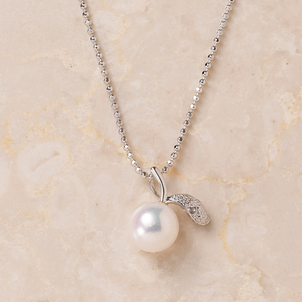 8mmのあこや真珠がとても可愛いリンゴモチーフのペンダントです。