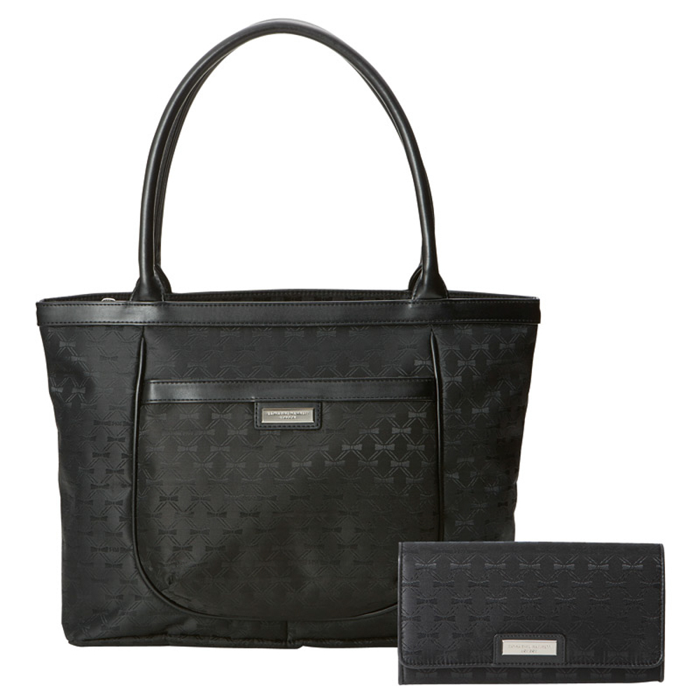 内容量 トートバッグ(27×39×11.5cm)・束入れ(9.5×19×3cm)×各1・トートバッグ:ポリエステル(ジャカード織)・合成皮革、束入れ:ポリエステル(ジャカード織)・牛革