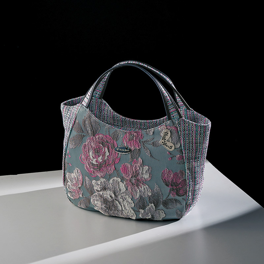 表地は、ニュアンスグレーにローズ柄の陰影が浮き立つようなデザイン。