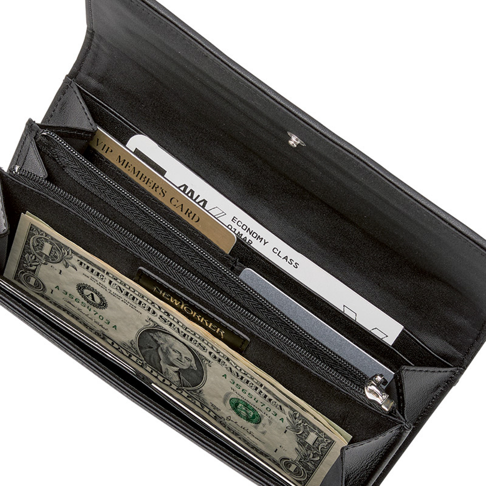 札入×2室、ファスナー開閉式小銭入×1室、オープンポケット×3室、カード入×12室。