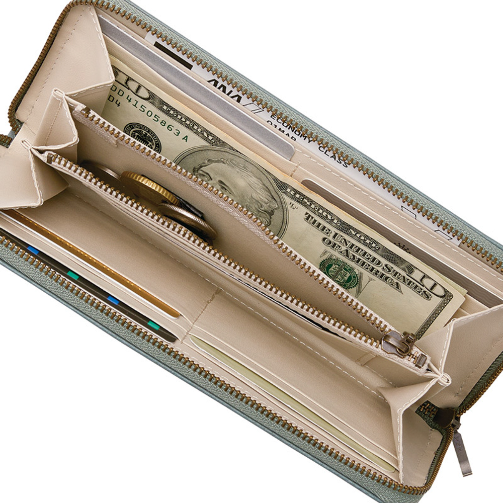 ポケットが多く大容量。開け閉めしやすく、中身が取り出しやすいラウンドファスナータイプです。本体素材には、日本の皮革の原点として名高い姫路レザーを使用。経年による変色・変化が少なく、軽くて使い勝手が良いのが魅力です。ファスナー開閉式。外オープンポケット・内ファスナー式小銭入×各1室、カード入×15室、札入・オープンポケット×各2室。