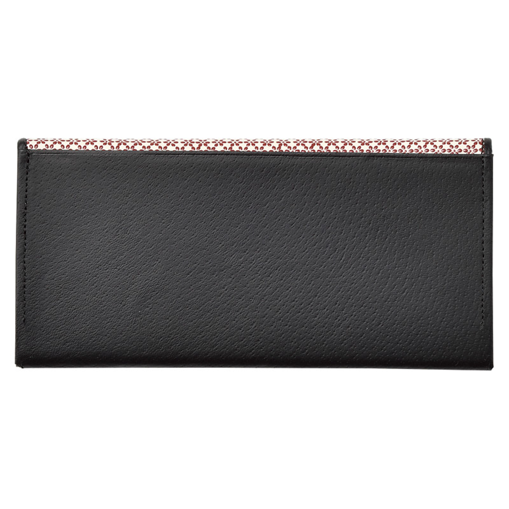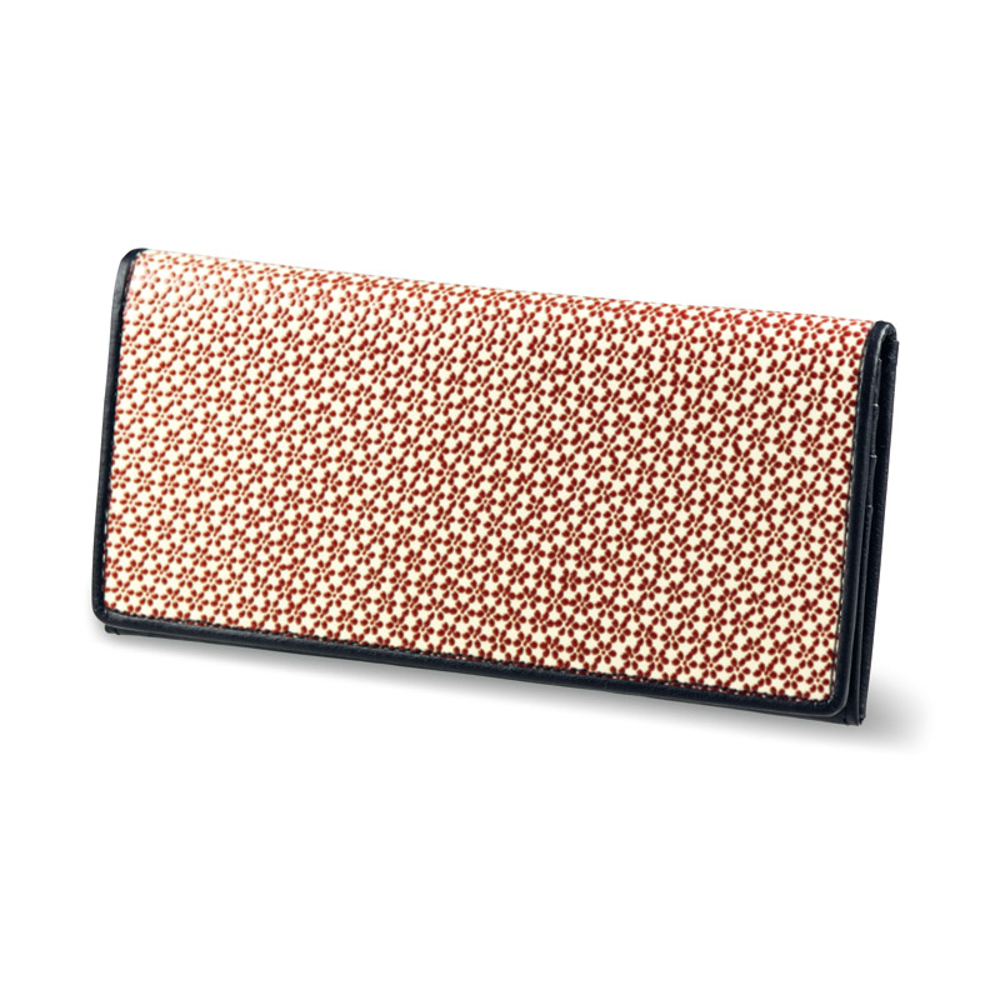 鹿革に漆で模様を描く革工芸の技法「印伝」を施した長財布です。