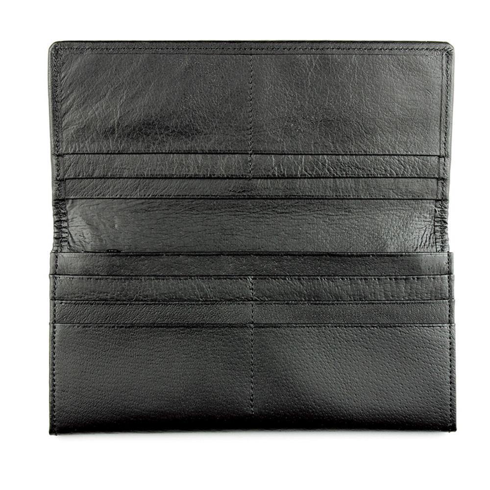 札入・ファスナー式小銭入×各1室、カード入×10室、オープンポケット×3室。