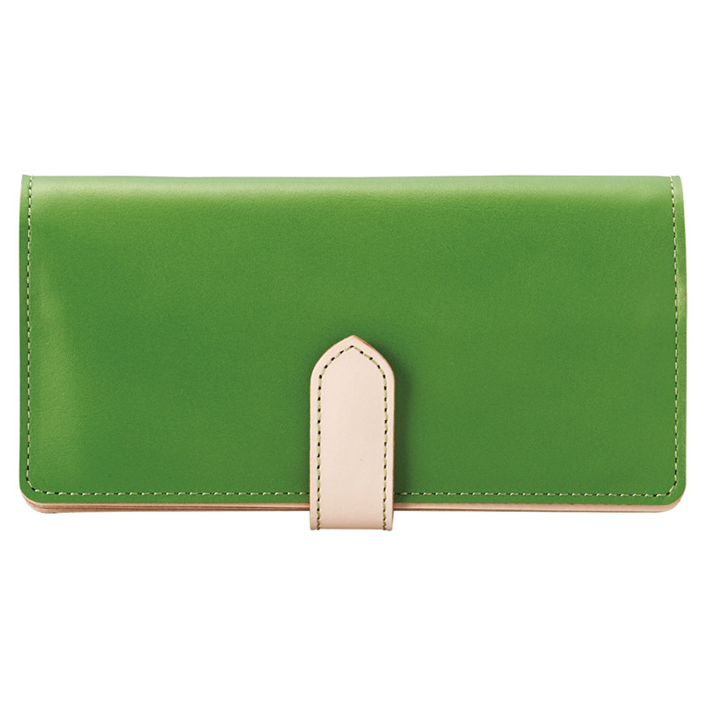 ポップなカラー革に落ち着いたヌメ革のコンビネーションで上品な仕上がりの長財布です。