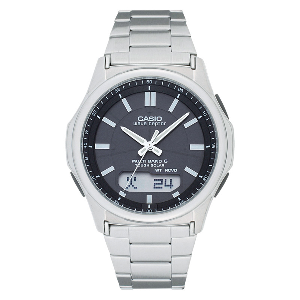 タフソーラー(ソーラー充電システム)、電波受信機能、ワールドタイム(世界29都市)、タイマー、ストップウォッチ付。