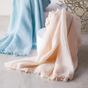 〈天然草木染〉 すみれ織ウールコットンショートマフラーピンク