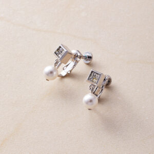 キューブ&パールイヤリング