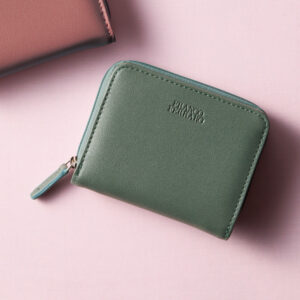 姫路レザー牛革L字ファスナーミニ財布グリーン